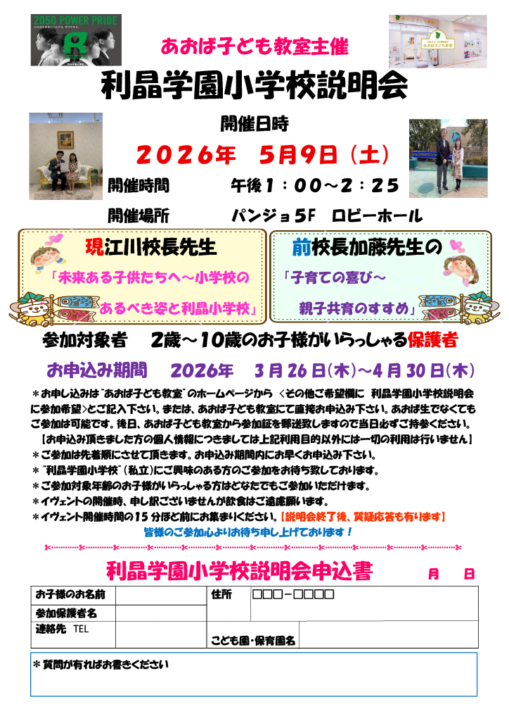 2026年 利晶学園小学校 説明会