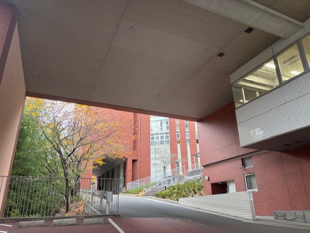 坂を登って登校します。